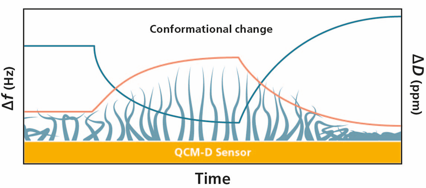 QSense QCM-D is a powerful method to study conformational change of layers and thin films at the sensor surface. The time-resolved, nanoscale analysis provides insight into processes such as layer swelling, crosslinking and collapse, and enables scientists and researchers in a range of areas to understand film behavior in various contexts, and to improve and optimize product performance across various applications.